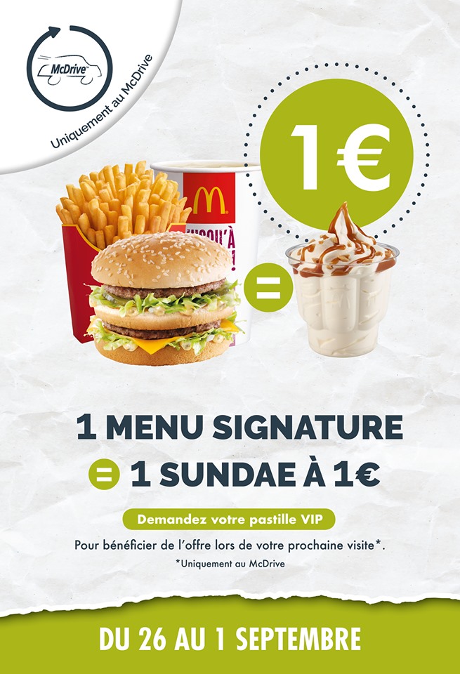 Pour un menu signature acheté, le sundae est à 1€ !