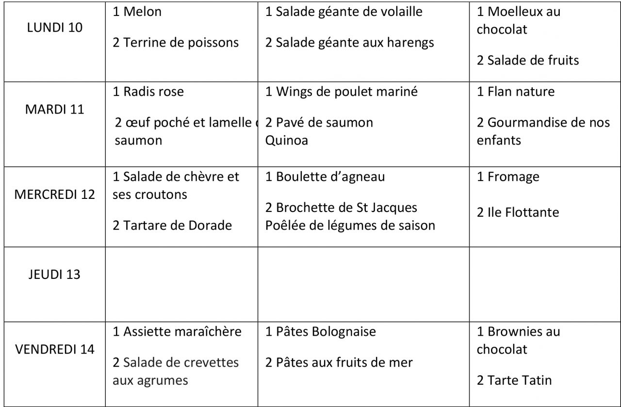 Découvrez les menus de la semaine du lundi 10 au vendredi 14 mai du traiteur Lecourt Receptions !